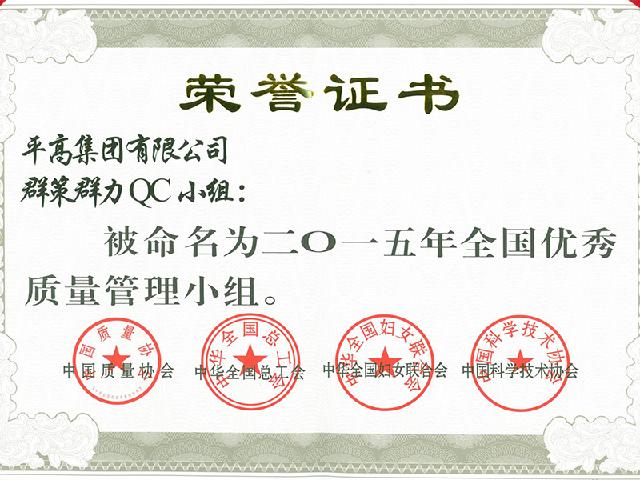 被命名五为2015年全国优秀质量管理小组